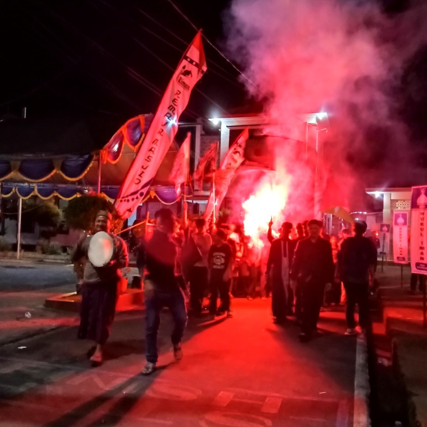 SUKAMULYA INFO - Dalam rangka menyambut kemenangan Hari Raya Idu Fitri 1447 H / 2026 M, Ikatan Remaja Masjid Nurul Iman Desa Sukamulya menggelar Pawai Takbir Keliling ke Seluruh wilayah di Desa Sukamulya, masyarakat sangat antusias mengikuti pawai takbir keliling dengan membawa memeron atau pertunjukan lainnya.