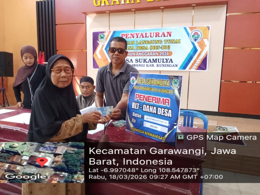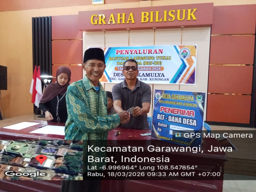 SUKAMULYA INFO - Sukamulya, Rabu 18 Maret 2026 melaksanakan Penyaluran Bantuan Langsung Tunai Desa atau dikenal dengan BLT DD, penyaluran BLT DD ini disalurkan kepada 12 KPM (keluarga penerima manfaat) dengan jumlah uanga tunai sebesar Rp. 150.000,00 / bulan atau Rp. 450.000,00 sebanyak 3 (tiga) bulan.
